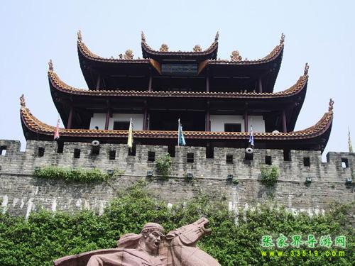 作為楚漢名城,長沙2000多年前就有寬厚的夯土城垣。明初悉改石基磚砌,外繞護城河。辛亥革命后拆城墻修環(huán)城公路,僅地勢最高的天心閣一段作為勝跡保留。時人有聯曰:“閣上九霄迎日月,城留一角看江山”。這段古城墻現長387.8米,高13.4米,頂面寬6.1米。分內外兩城,外城又筑南北兩月城,內有藏兵洞、炮洞等,并留清代鐵炮4門。城墻上尚存的斑斑彈痕,向人們訴說著城墻下的一段悲壯歲月:1852年9月10日,太平軍抵長沙南門外。西王蕭朝貴身先士卒,躍馬揮劍,在前沿指揮攻城,不幸于9月12日中炮犧牲。以此為背景,《太平軍魂》群像雕塑1993年10月在天心閣古城墻下揭幕,向世界展示了一曲農民革命戰(zhàn)爭的悲壯頌歌。