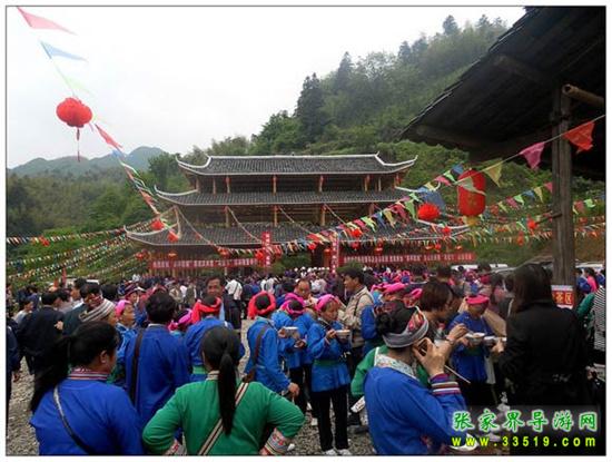 二、訪苗山:徒步經(jīng)峽谷上對(duì)歌臺(tái),登龍脊山百步石頭天梯,觀奇異風(fēng)水“三龍奪寶”,賞龍鱗樹“九龍迎賓”,攔門酒、攔門歌、攔門鼓,參觀苗寨人家,在山崖邊的“情人坡”樹蔭下納涼,觀數(shù)人合抱的“九世古樹”、草帽大的“靈芝”,參與互動(dòng)的民俗表演。苗家中餐(農(nóng)家飯,迎客酒)后游神龍峽,走在鄉(xiāng)間的小路上,小溪、田埂,別有一番趣味,乘船返長(zhǎng)潭崗。