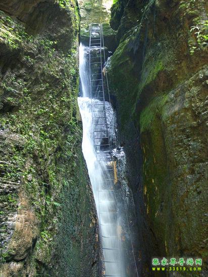 坐龍峽擁有中國第一條特種游道。所有游道均建于峽谷深處,依山取勢,既經(jīng)細心雕琢聽卻又渾然天成。粗樸的板栗木棧道,可以讓你零距離的親近那一潭碧幽、聽聞山泉叮咚;精巧的跳墩,可以讓你媳戲流泉、觸感溪瀑;原質(zhì)的石坎道,讓你不得不調(diào)動全部的身心能量悉心攀援、感悟峽谷;有驚無險的鐵梯,讓你伴著腳下轟鳴的溪水,在驚怵中體味一份快慰。 出口出的土家山寨,保留了古樸獨特的生活習(xí)俗。一塊臘肉就一口醇香的“苞谷燒”會讓你洗去所有的疲憊,在輕松中憨厚的主人向你講述過去強人出沒的故事