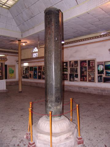 彭士愁戰(zhàn)敗后于后晉天福五年(公元940年)與馬希范議和,把戰(zhàn)爭的經(jīng)過和議和的條款,鐫刻于銅柱之上。銅柱重五千斤,高丈二尺,入土六心,形為八面,中空,內(nèi)實鉅錢,柱端覆蓋銅頂,銘誓狀于銅柱之上,立于會溪,宋天禧二年(公元1018年)重立時,又羼刻了一些土官銜名。清中葉,柱上銅頂被盜,沉于江心,柱內(nèi)銅錢亦被人以飴粘錢殆盡。清光緒十一年(公元1885年),永順府知府張曾揚(yáng)建亭保護(hù)。民國年間亭被毀。”銅柱的銅質(zhì),精純光潤;八面所鐫顏、柳體陰文,雖經(jīng)千載風(fēng)雨洗刷,霜雪蝕磨,仍清晰如初。溪州銅柱是研究土家族古代歷史的重要文獻(xiàn)。土家族視銅柱為神物。