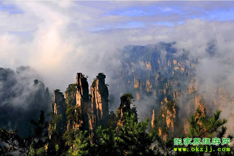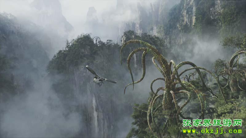 巍巍群山漂浮在天空,云霧繚繞,美麗壯觀……這是電影《阿凡達(dá)》中的經(jīng)典場(chǎng)景。阿凡達(dá)的全球熱映使人們對(duì)這部電影充滿(mǎn)了驚嘆和好奇,而這部影片奇幻的拍攝地到底是在哪里這一問(wèn)題也引發(fā)了影片熱愛(ài)者的紛紛推測(cè)。導(dǎo)演卡梅隆的一句“中國(guó)元素給《阿凡達(dá)》大大增色”不僅勾起了旅游愛(ài)好者的向往之心,更是引發(fā)了一場(chǎng)不小的爭(zhēng)論。片中美輪美奐的“哈利路亞山”讓人驚嘆向往,現(xiàn)實(shí)版的“哈利路亞山”到底是以黃山還是張家界的武陵源為背景,成了網(wǎng)友和旅游界的熱議焦點(diǎn)。“第42秒出現(xiàn)過(guò)張家界的南天一柱,第33分21秒出現(xiàn)過(guò)黃石寨的玉屏峰,第55分53秒出現(xiàn)過(guò)寶峰湖的瀑布……”在網(wǎng)上,有發(fā)帖者將這些在《阿凡達(dá)》影片中出現(xiàn)過(guò)的張家界景致一一羅列。通過(guò)慢放發(fā)現(xiàn),影片中大概有25分鐘完全是張家界的山水風(fēng)光。出現(xiàn)多次的是黃石寨前山的南天一柱,金鞭溪的劈山救母出現(xiàn)不低于5次,然而出現(xiàn)最多的還是寶峰湖瀑布和袁家界迷魂臺(tái)里面的擎天柱。而張家界和黃山的最大區(qū)別是黃山是花崗巖地貌,上面非常光滑,幾乎沒(méi)有植被,而張家界是石英砂巖地貌,上面植被覆蓋非常茂盛。