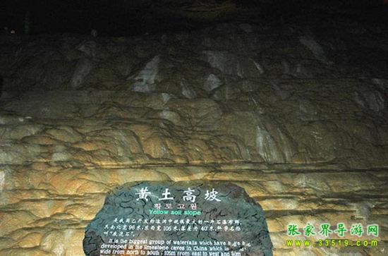 我們現(xiàn)在來到了黃龍洞最寬的大廳——南北寬達(dá)96米的天仙宮。天仙宮有洞內(nèi)最大的石瀑布群,南北寬62米,東西寬105米,落差達(dá)40米。人們給它取了一個(gè)很生動(dòng)形象的名字——黃土高坡?;蛟S您已經(jīng)看到了,黃土高坡上面竟然生長有植物!真是“洞中乾坤大”?。∷鼈兪呛唵蔚霓ь愔参?。它們?yōu)槭裁茨軌蛟谶@兒生長呢?這主要因?yàn)楣夂献饔?,是日光燈神奇的力量喚醒了它們的生命之?mèng)。