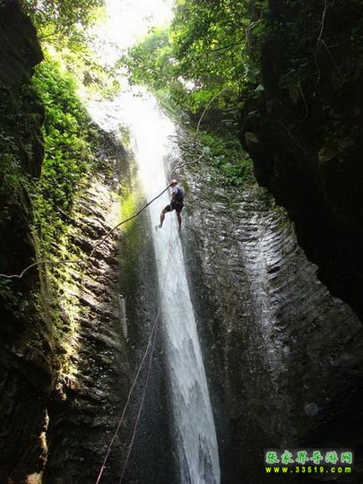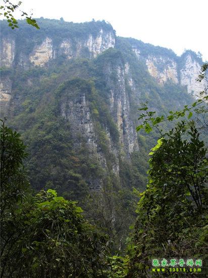 【吳王坡】來(lái)到這里以后,面前的絕壁逐漸開闊,視野角度也慢慢放大。從我們這里平視出去,就可以看到對(duì)面絕壁的全貌,從山巔到溪谷的底部,一覽無(wú)余。對(duì)面的絕壁后面,就是著名的吳王坡村。相傳,李自成帶著大順帝的光環(huán),敗走北京城以后,轉(zhuǎn)戰(zhàn)秦嶺,先后渡過(guò)黃河和長(zhǎng)江,一路南下,來(lái)到了湘西,最后還是回天無(wú)力,只有兵敗歸隱,在緊鄰我們張家界市的常德市石門縣的夾山寺皈依佛門。對(duì)面的吳王坡村,就是傳說(shuō)中“沖冠一怒為紅顏”的吳三桂追殺李自成起義大軍,和起義軍進(jìn)行生死決戰(zhàn)的古戰(zhàn)場(chǎng)之一。傳說(shuō)吳三桂在此大勝李自成起義軍,殺死起義軍幾千人,是吳三桂一生之中的“惡仗”之一。當(dāng)?shù)氐?a class="insidelink" href="http://www.daogoumao.com/fengqing/" title="土家">土家人后裔,根據(jù)這段歷史上的傳說(shuō),將村子的名字叫成了“吳王坡”。吳王坡村的名字又叫吳亡坡,這個(gè)“亡”是“滅亡的亡”,是說(shuō)吳三桂雖然此戰(zhàn)勝利以后,坐鎮(zhèn)云南,被封為“平西王”,最后還是在“三藩叛亂”之中走向了滅亡。而滅亡的因緣和轉(zhuǎn)折,在當(dāng)?shù)乩习傩湛磥?lái),就是這里,就在吳王坡。所以,吳王坡又有了“吳亡坡”的名字演繹成分。