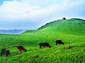 比主峰低百米處是面積達(dá)2000余畝的平坦草原,是放牧開發(fā)養(yǎng)殖業(yè)的最好場(chǎng)所。