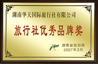 我們是您的最佳選擇! 值得信賴。 另: 1、2009年經(jīng)省旅游局和省世博辦推薦,華天國(guó)旅成為上海世博會(huì)團(tuán)隊(duì)票合作銷售“湖南省唯一指定旅行社”。 2、最新評(píng)定:華天國(guó)旅為 湖南五大地接社之一 (2010年4月22日) 3、最新評(píng)定:華天國(guó)旅為:湖南五星級(jí)旅行社 (2010年5月10日)