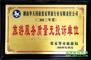 9、 旅游全程設(shè)有質(zhì)量監(jiān)督投訴電話, 每位游客游程結(jié)束時(shí)發(fā)放游客意見單。如您對(duì)我公司的承諾和服務(wù)有任何疑問和建議,請(qǐng)直接撥打我公司質(zhì)量監(jiān)督電話:0744-8362219;當(dāng)時(shí)投訴,及時(shí)處理!