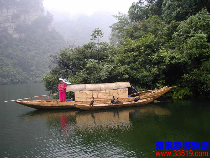 (鸕鶿捕魚)大家看,那是鸕鶿在捕魚。從前,武陵源人以打獵捕魚為生。漁夫養(yǎng)一、二只鸕鶿,就等于開了半坡荒地。鸕鶿是魚的天敵。鸕鶿見魚就拼命追殺,是小魚,就一口吞了,可惜漁夫在它們的脖子上扎了個小圈兒,魚兒咽不下,卡在喉管里,只好上船吐出來;若遇到大魚,就先啄眼睛,讓它失去反抗力,再勾住腮殼,把它拖出水面。