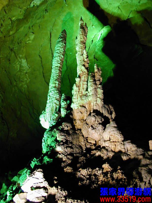 (龍宮)龍宮是黃龍洞十三個大廳中最大的一個,也是景色最美的景點之一,底面積15000平方米,平均高40米,兩千余根石筍拔地而起,千姿百態(tài),異彩紛呈,或如飛禽走獸,或如宮廷珍藏,有的像巍巍雪松,有的像火箭升空。龍宮后園有金銀兩座花池,清水常溢,花簇盛開。宮頂鐘乳柳垂簾掛,四周壁畫栩栩如生。溶解著各色各樣的礦物質(zhì)的水,從巖層中滲透出來,滴落下來。礦物質(zhì)在洞頂凝固結(jié)晶成倒懸鐘乳石,從鐘乳石滴落的水又把礦物質(zhì)澆疊、堆壘在洞底,而長成節(jié)節(jié)向上的石筍。大家看看這龍宮的造型,領(lǐng)略這磅礴的氣勢。洞內(nèi)最大石筍,高12米、直徑10米的漢白玉天然石椅“龍王寶座”居高臨下,眾多石柱石筍似人似物,維妙維肖,圍著寶座朝拜山呼,幾十座珊瑚亭亭玉立,儼然一支龐大的“宮廷樂隊”。湖南著名教授羊春秋先生作《寄生草》詞對此進(jìn)行描繪:“百態(tài)千姿模樣,三宮六院門巷。龍王開宴設(shè)瓊漿,猴王偷果鬧天堂,君王納寵擁羅帳。搬演了人間爭攘,匯集了天下奇觀。”