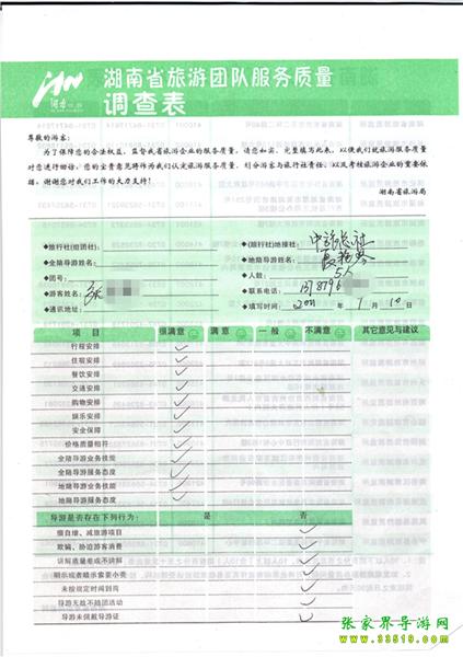 2011年7月10日張先生一行5人旅游質(zhì)量反饋