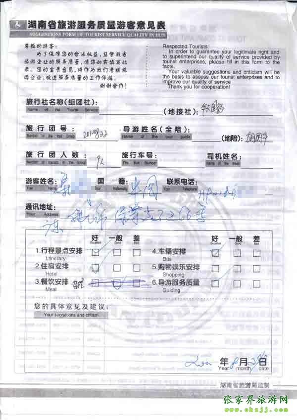 2010年8月24日佛山梁先生一行9位旅游質(zhì)量反饋